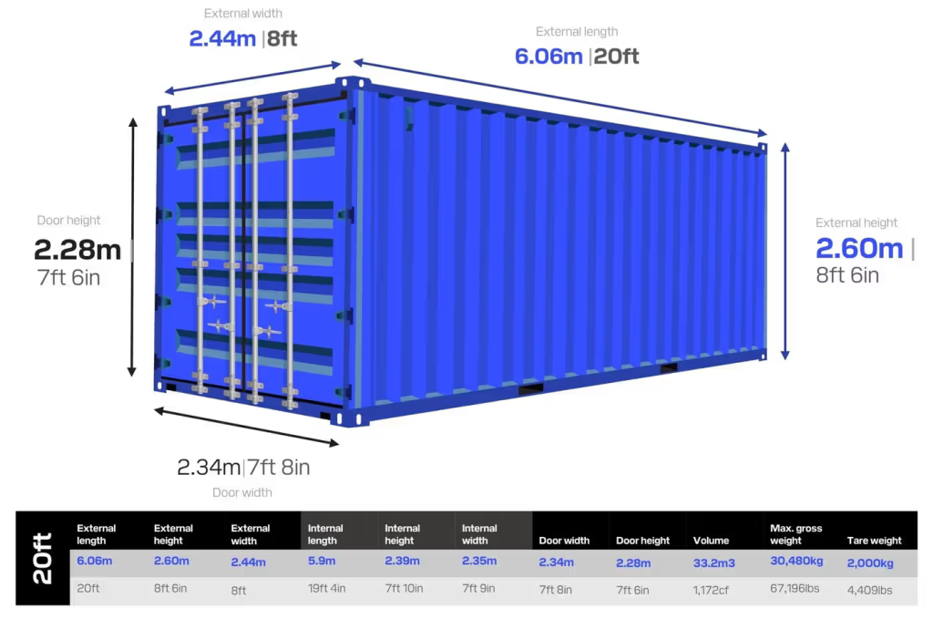 Understanding the container’s weight and payload capacity is essential for planning placement and transport.